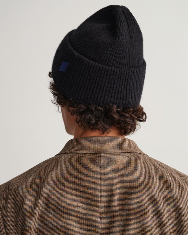 Questo berretto a coste è un capo essenziale per l’inverno e presenta un risvolto con un’etichetta con bandiera GANT laterale.