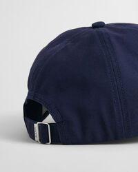 Questo cappellino con profilo basso realizzato in tela liscia presenta 6 pannelli, un cinturino regolabile e una grafica GANT ricamata al centro sulla parte anteriore.