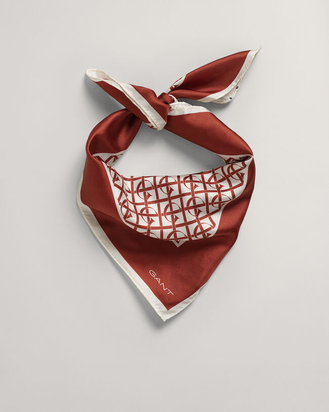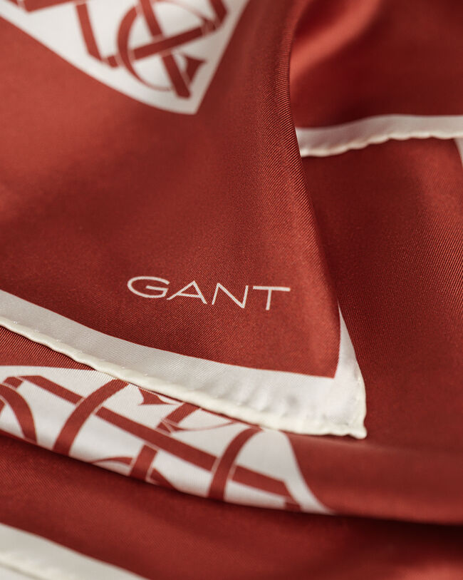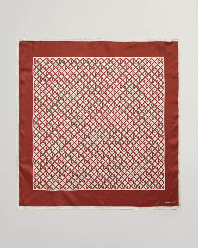 Questa sciarpa in 100% seta presenta bordi a contrasto e una stampa monogramma G sviluppata dal nostro studio grafico.