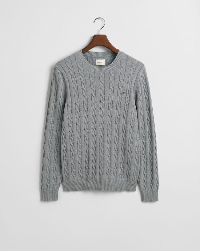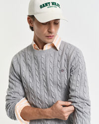 Questa soffice maglia in cotone con lavorazione a trecce su tutto il capo con vestibilità regular presenta il nostro classico girocollo. Un capo preppy essenziale, caratterizzato dal nostro iconico stemma Gant Archive ricamato sul petto e bordi a coste su fondo e polsini.