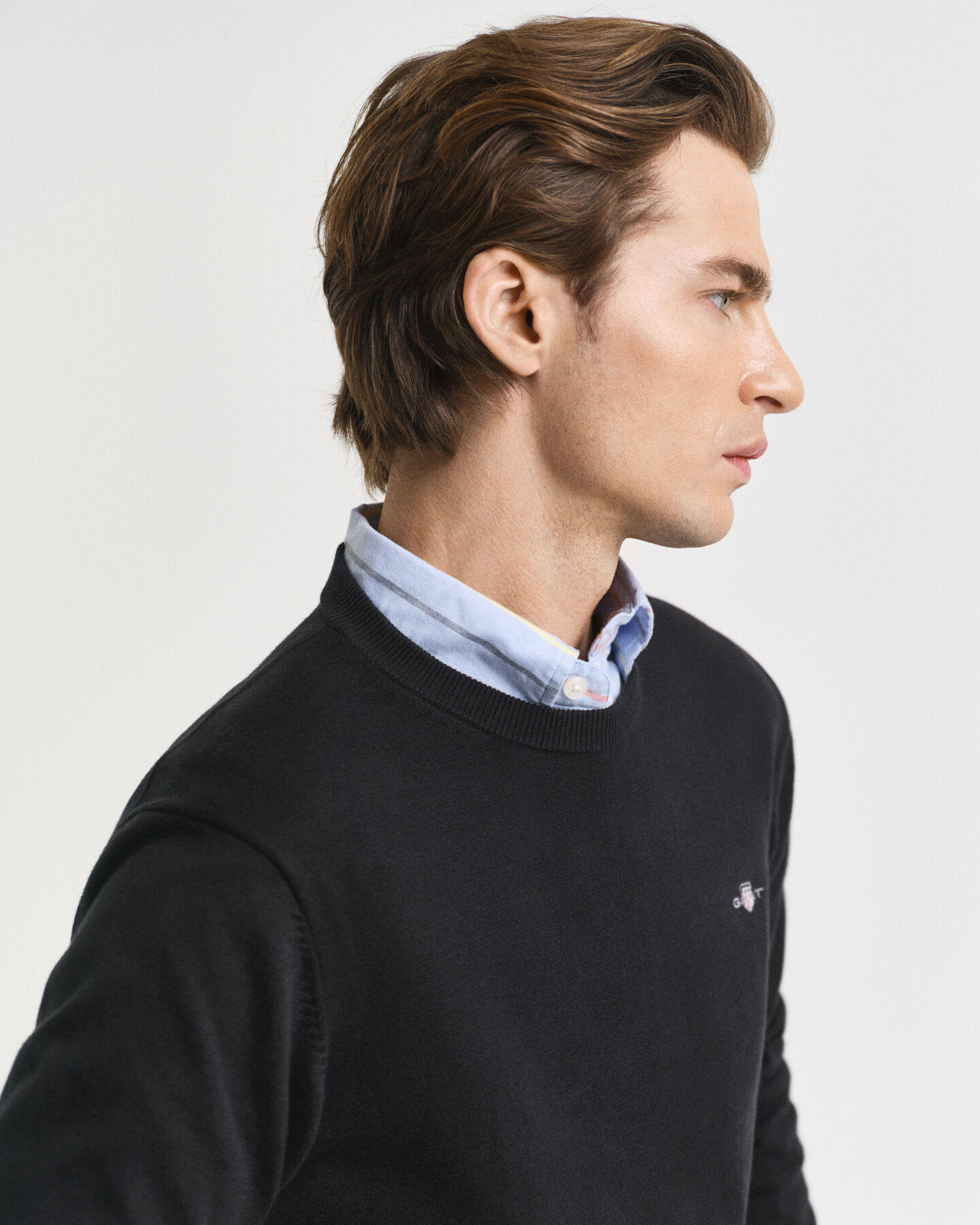Questa maglia girocollo in cotone e vestibilità regular presenta una grafica con stemma Gant ricamato sul petto.