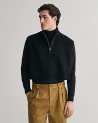 Questa pettorina smanicata in morbido misto lana è perfetta come strato in più da indossare su camicie, magliette o canotte. In una struttura a coste con colletto a doppio strato con zip, presenta un logo GANT tono su tono ricamato sul fondo.