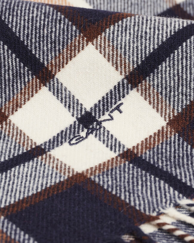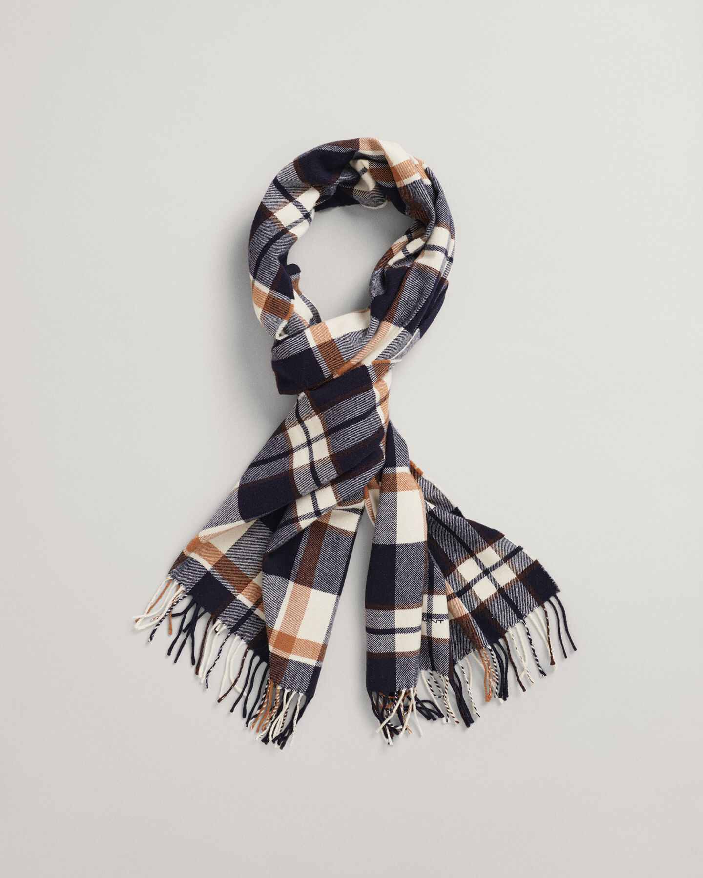 Realizzata in lana 100%, questa sciarpa in lana è lussuosamente calda e morbida. Realizzata in un classico motivo a quadri con colori di questa stagione e frange, la sciarpa presenta un logo GANT tono su tono ricamato sul fondo.